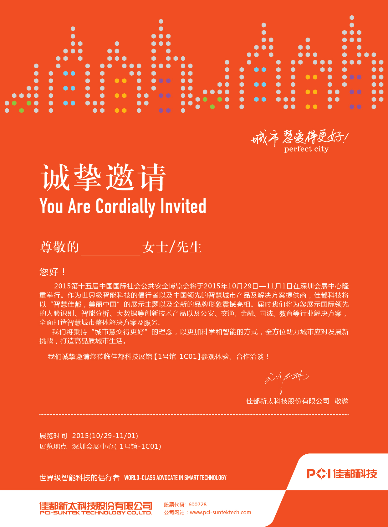 2015第十五届中国国际社会公共安全博览会将于2015年10月29日—11月1日在深圳会展中心隆重举行。作为世界级智能科技的倡行者以及智慧城市产品及解决方案提供商,z6.com科技将以“智慧佳都,美丽中国”的展示主题以及全新的品牌形象震撼亮相。届时我们将为您展示先进的人脸识别、智能分析、大数据等创新技术产品以及公安、交通、金融、司法、教育等行业解决方案,全面打造智慧城市整体解决方案及服务。